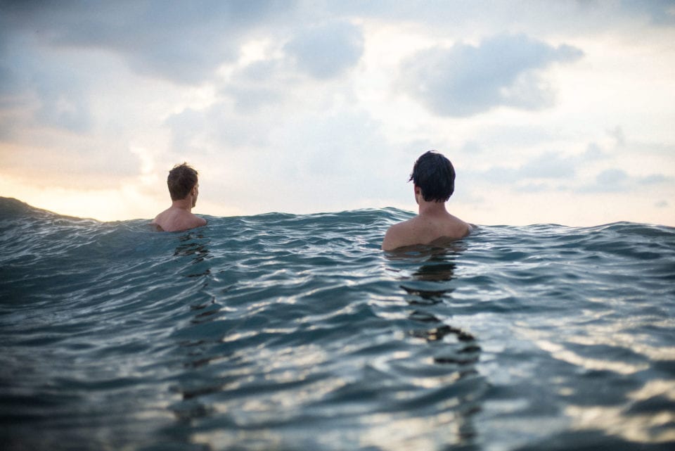 David van Dartel’s self-portraits appear out of soft, serene landscapes – figures reflected in water, emerging from tall dune grasses or bobbing in deep blue seas.