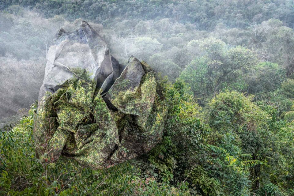 Fragile Landscape | Ingrid Weyland harnesses scrunched-up paper as a metaphor for humanity’s impact on nature, overlaying forest scenes with twisted print-outs.