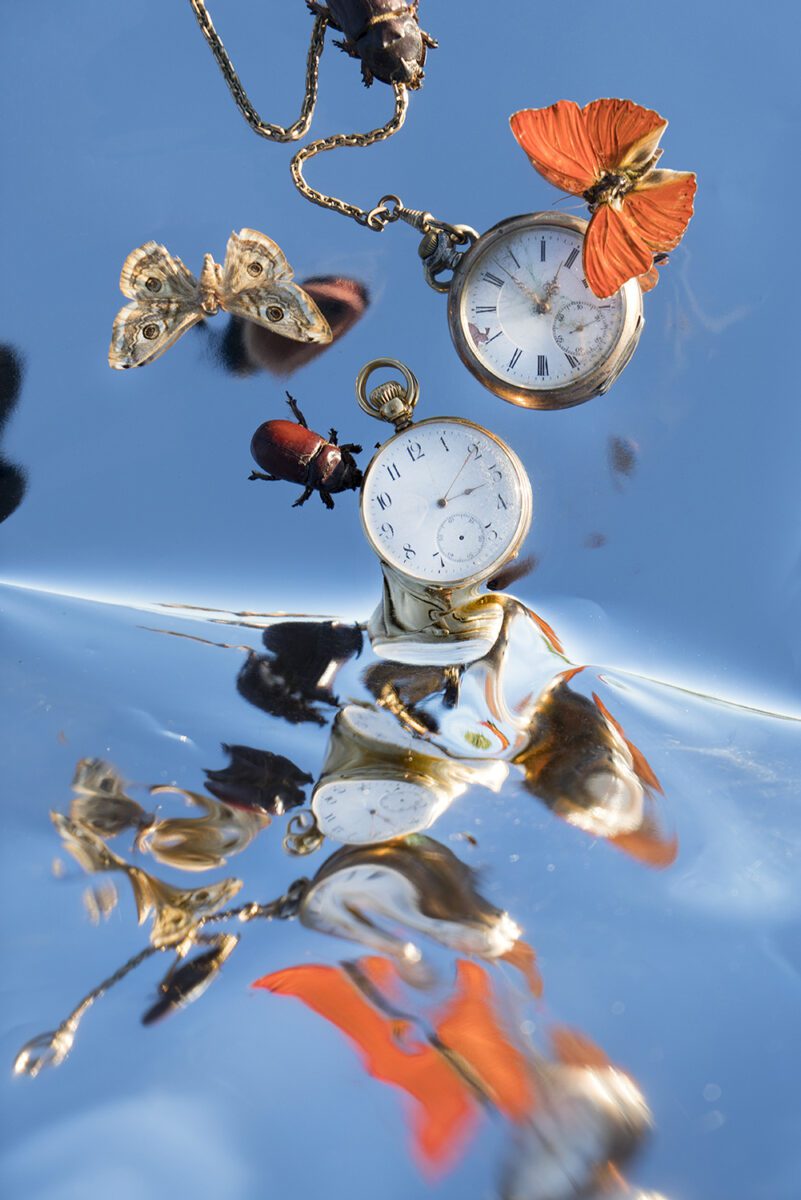 Pocket watches and insects cascade into a pool of water. A woman gazes intently into the camera, her face fractured by shards of glass. A pile of rotten fruit blurs into a warped mirror. This is the surreal world of Danish photographer Henriette Sabroe Ebbesen (b. 1994). Her kaleidoscopic creations invite viewers to step beyond their usual frame of reference. Ebbesen uses reflective surfaces to test the boundaries of reality, producing each shot without digital manipulation or AI. She is trained as a medical doctor, something which influences much of her creative practice and worldview. Her work has been widely exhibited across the USA and Europe, and featured in publications like Vanity Fair Italia, Vogue and Le Petit Voyeur. We spoke with the artist about her latest show at Fotografiska Tallinn, how her background as a doctor informs her creative approach and the role of Artificial Intelligence in art.