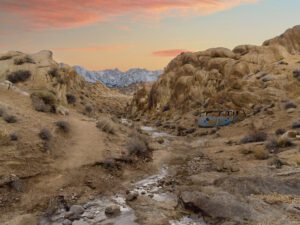 DM: Two images come to mind. The first is of a flooded desert basin where the horizon dissolves into a mirrored sky. This scene captures both beauty and unease, a world transformed by forces beyond human control. For me, it encapsulates the project’s balance between wonder and critique. The second image depicts two rusted, old cars stuck in the mud; this picture has become a metaphor for the current state of the political environment in the USA. Two old cars rusting under the desert sun, part of a long-gone industrial era of strength and prosperity, slowly being overwhelmed by the environmental effects that the cars themselves have created, only to be revealed decades later through water evaporation and drought. The cars themselves are not only a nostalgic reminder of what was, but are a warning about our current moment. The country, government and policies are stuck in the mud, they can’t move forward and can’t move back. Forever sinking under its own weight, rusting away.
