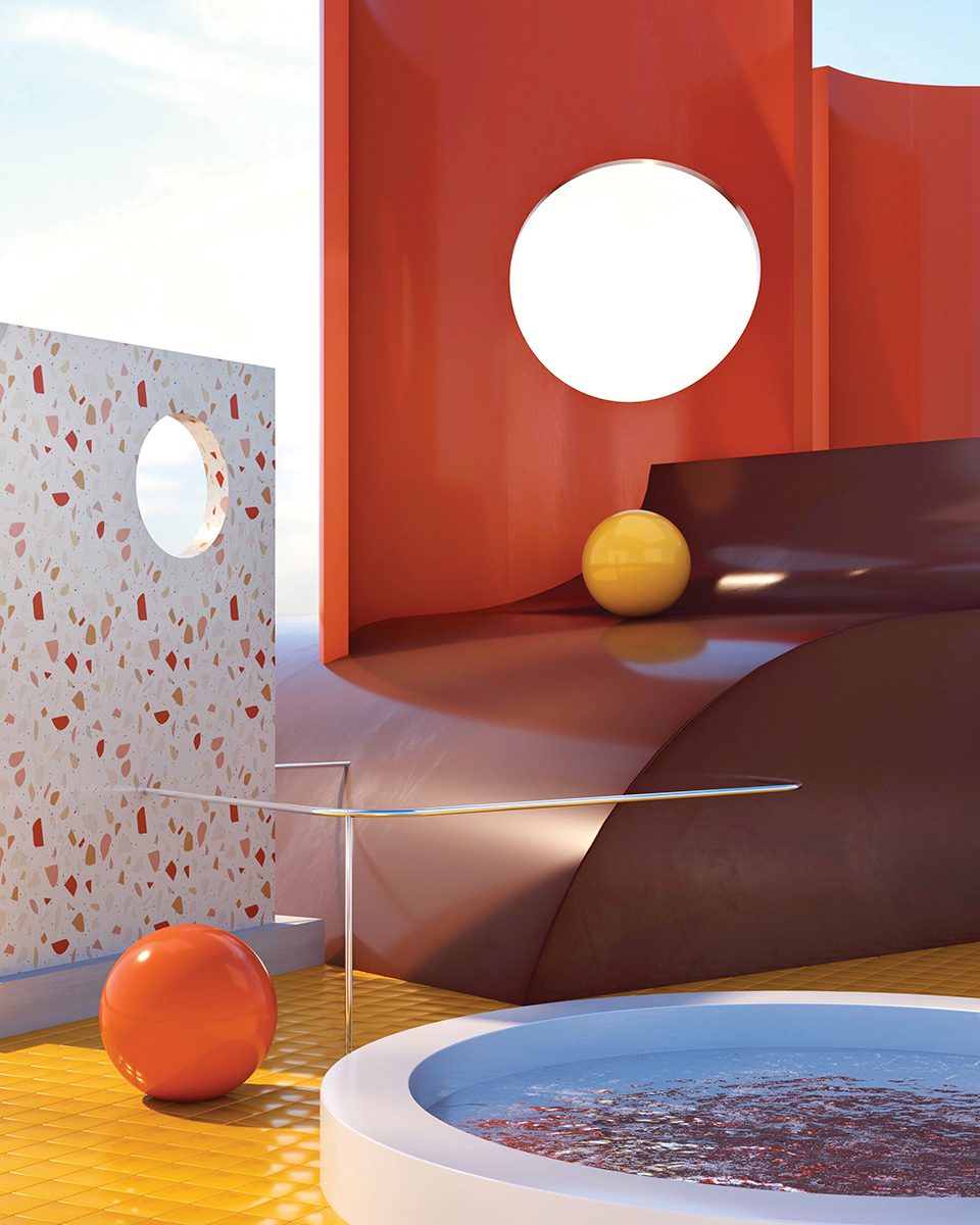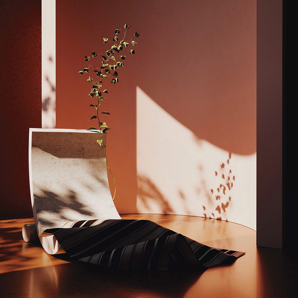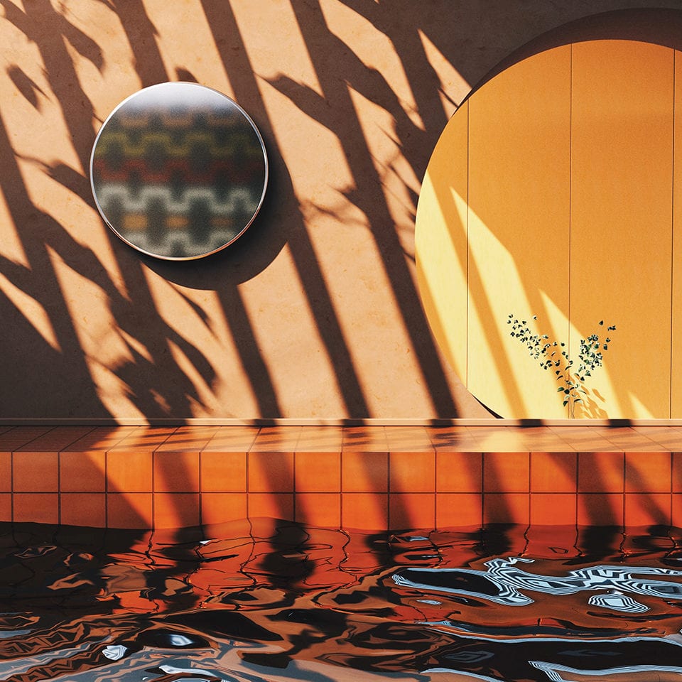 What if a daydream was brought to life? Shadows extending freely across a tiled floor, a mirror standing upright on a table, a pool of water rippling to its own rhythm: these are the scenarios that fill the following images. Entitled New Perspectives, the featured works are a series of digital renders with no beginning, middle or end. Fleshed out with warm, earthy tones, each of the pictures casts a warm filter over virtual interiors and their items. The ambiguous locations burst with energy and contemporary stylistics. With seven years’ experience in graphics and branding, Christophe Barneau (b. 1989) is a multi-disciplinary designer creating his own worlds and pushing the boundaries of space in the process. He has previously worked with esteemed institutions and brands such as Saatchi, Paris; Auckland Museum and Chanel. Barneau works on a range of projects from typography and illustration to web design, mobile applications and print works. Instagram: @chrisbarneau.