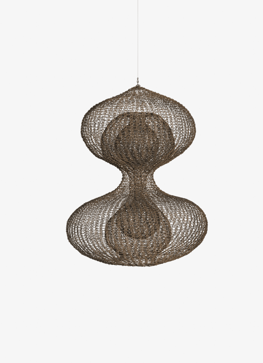 2. Untitled (S.427, Hanging Single-Lobed, Five-Layered Continuous Form within a Form), 1953 Brass wire, 45.7 × 71.1 × 71.1 cm; Collection of Don Kaul and Barbara Bluhm-Kaul, Chicago