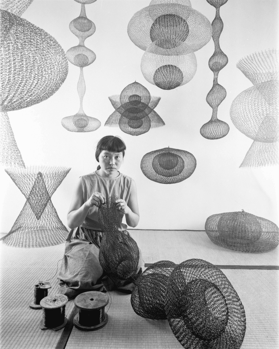 1&6. Artist Ruth Asawa making wire sculptures, California, United States, November 1954; image: Nat Farbman/The LIFE Picture Collection/Shutterstock; artwork: © 2026 Ruth Asawa Lanier, Inc., courtesy David Zwirner.