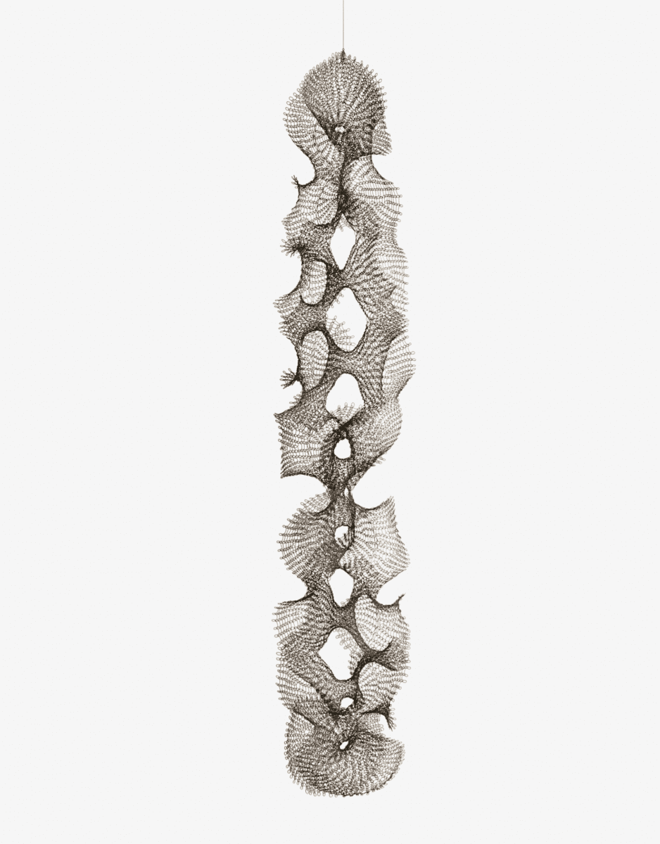 3. Untitled (S.433, Hanging Nine Open Hyperbolic Shapes Joined Laterally), ca. 1958 Cooper wire 193 x 38.1 x 38.1 cm; William Roth Estate © 2026 Ruth Asawa Lanier, Inc., courtesy David Zwirner; photo: Laurence Cuneo.