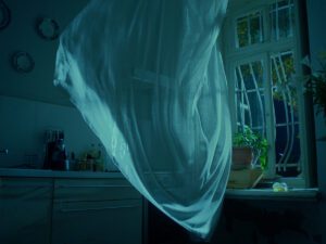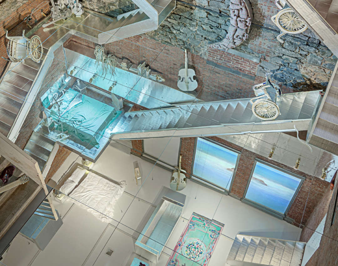 Los Angeles-based artist Samara Golden creates immersive installations that explore what she calls the sixth dimension, where a multitude of pasts, presents, and futures exist concurrently. For The Flat Side of the Knife, Golden presents her largest installation to date, filling the double-height of MoMA PS1, New York’s Duplex Gallery with staircases, beds, couches, lamps, musical instruments, video, and sound.