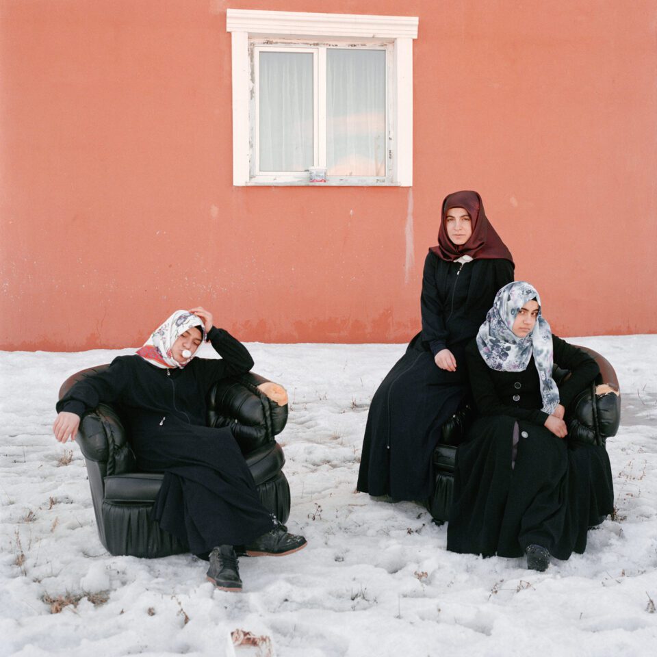 4. Sabiha Çimen, Girls singing Kurdish love songs together at noon break, after prayers, in the backyard of the Quran school. Kars, 2018 © Sabiha Çimen, Courtesy of Howard Greenberg Gallery, New York.