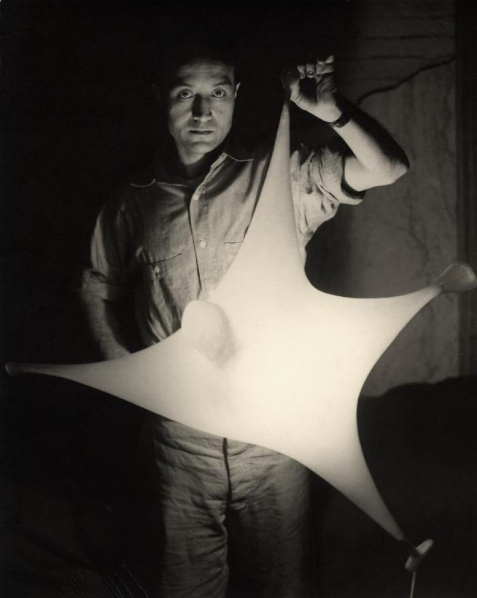2. Isamu Noguchi with study for Luminous Plastic Sculpture, 1943. Photograph by Eliot Elisofon The Noguchi Museum Archives, 03766 ©INFGM / ARS – DACS / Eliot Elisofon