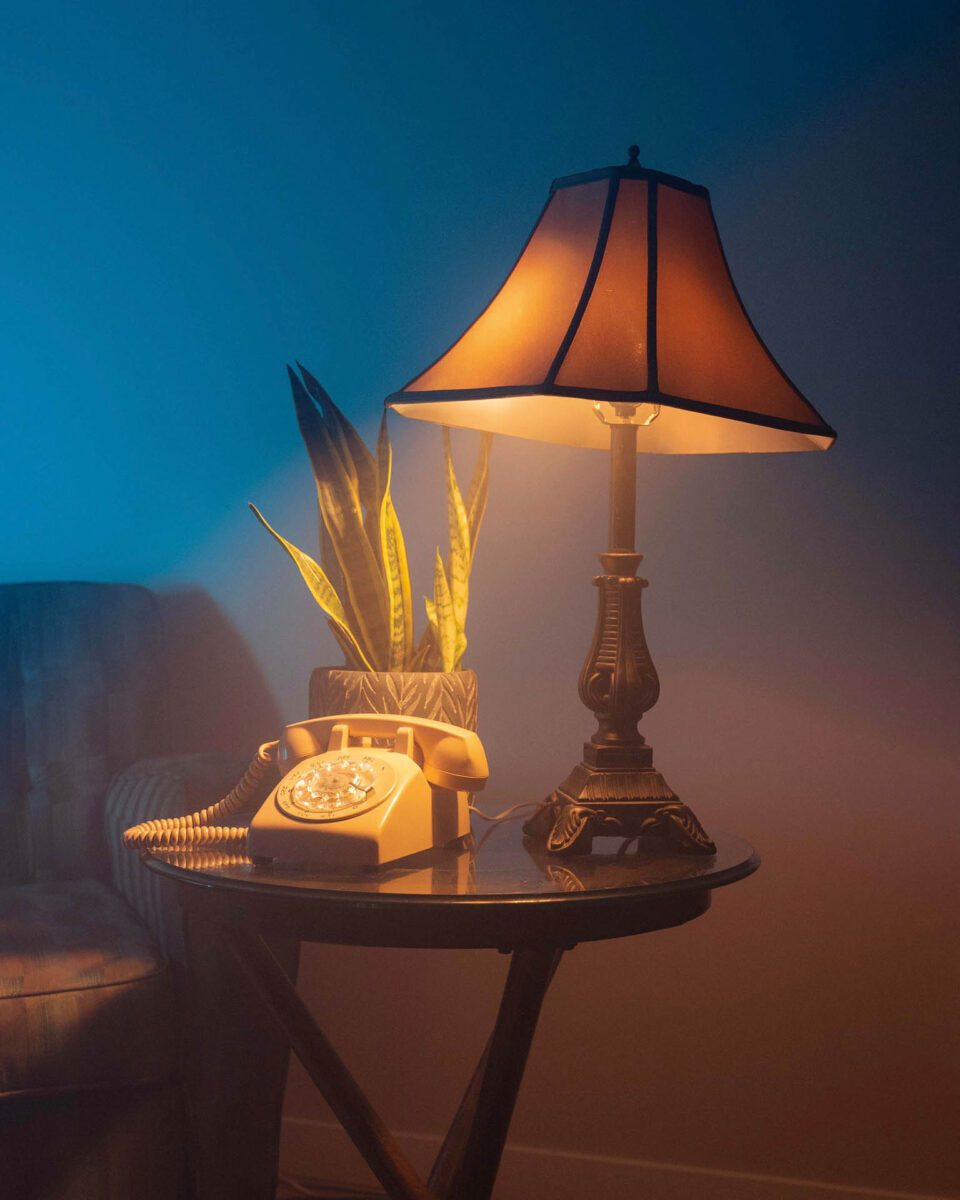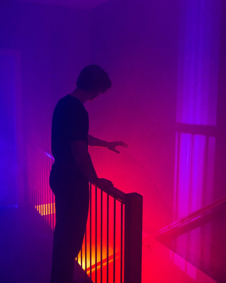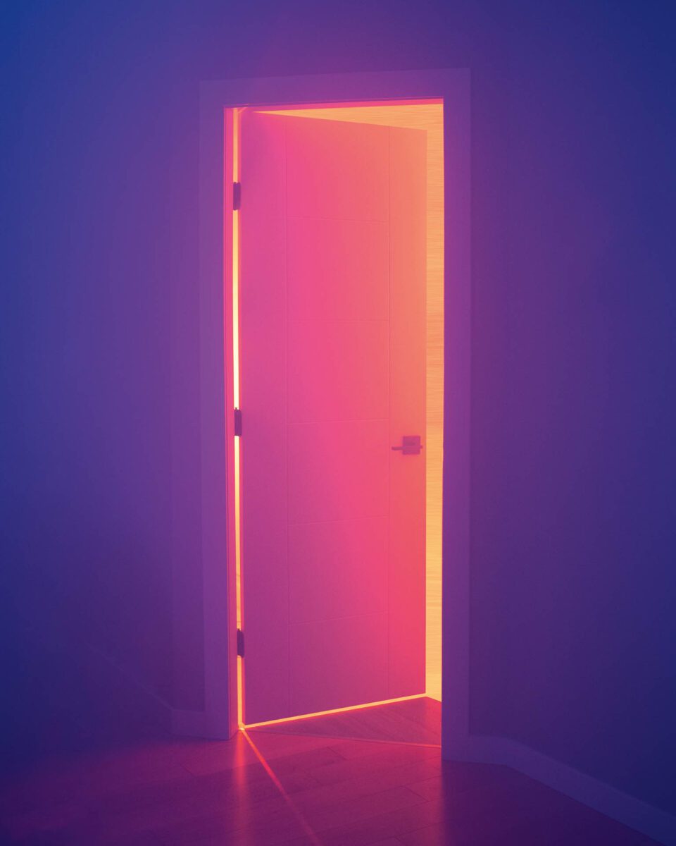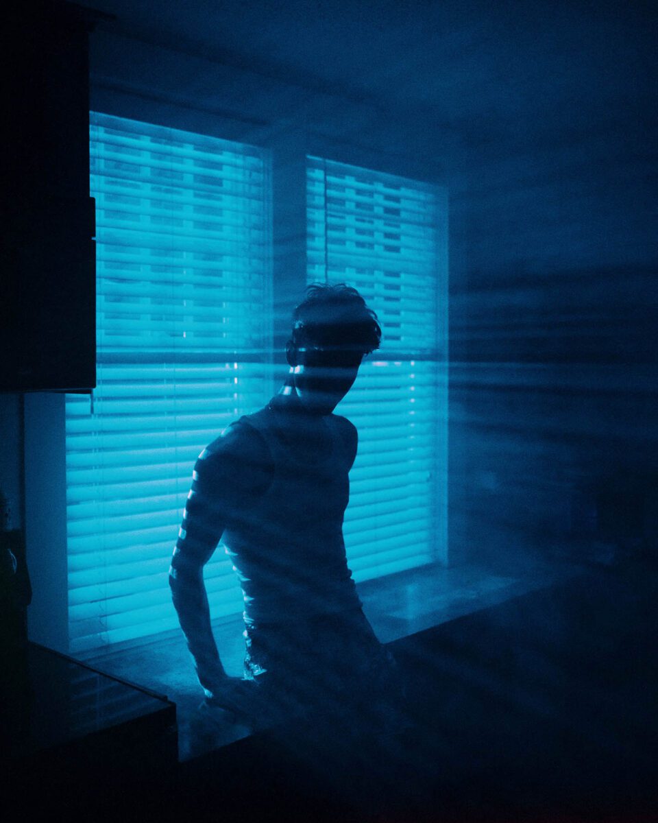 Carter Baran is a Canadian artist with a passion for surreal and ethereal scenes. The fol- lowing pictures are either self-portraits, or the result of spontaneous shoots with friends. Baran’s photos are united by a neon colour palette and masterful use of haze and shadow. Characters – who are invariably suffused in an eerie glow – open mysterious doors, hover above stairways or drive to unknown destinations. You’re never quite sure what is going to happen next, or who might be lurking beyond the edge of the frame. In one shot, a vintage telephone waits to ring on a side table. In another, strange energy seems to seep through a closed window. Baran’s photography kit comprises a couple of lenses, LED lights and a fog machine: “I find a lot of joy in having those limitations – in duct-taping lights to fishing rods, or building spotlights out of flashlights and cardboard.” Right now, the artist is taking a new direction – turning his attention towards cinematography and music production. carterr.co