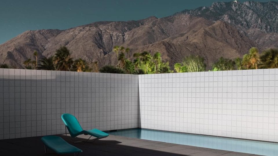 Transforming California’s iconic mid-century Modernist architecture into surreal playgrounds, the images – devoid of human presence – collate past, present and future, offering fertile backdrops for the construction of multilayered narratives.