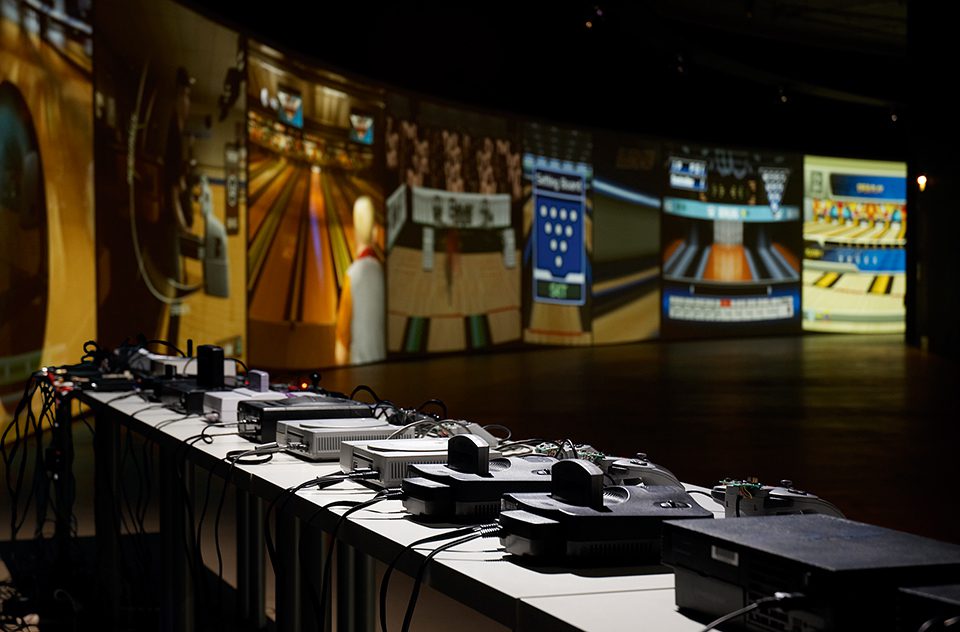 In a large-scale summer exhibition, Pro Tools, curated by Christiane Paul, the Whitney Museum of American Art is presenting a wide-ranging selection of recent work including sculpture, video, works on paper and interactive computer-game modifications. At the centre of Pro Tools is Various Self Playing Bowling Games aka Beat The Champ (2011), which was co-commissioned by the Barbican, and shown at The Curve gallery there this spring. The piece features large-scale multi-channel video projections of 14 different computerised bowling games spanning from the late 1970s to the present-day. The sound of all the games playing at once makes for a blaring cacophony of electronic sounds; the flashing images an overwhelming visual collage. In its sweep from the pixellated blocks of the Atari 2600 to the clean blue and white lines of the Sega Genesis, and the edgy polygons of early 3D graphics in Playstation 1, Beat the Champ is like an evolutionary timeline of computer imagery.