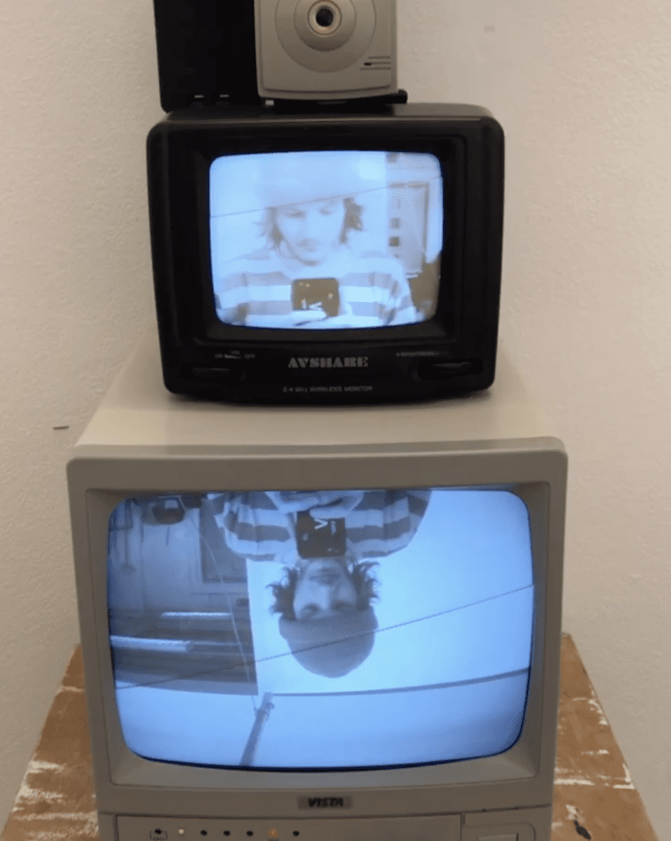 Obsolete monitors are a key medium of mine, each having its own history of displaying and being watched. They have aged through their own undisclosed timeline. These observation screens now become a means of being observed. The spectator is now the feature of the work; watching the screen brings attention to themselves.