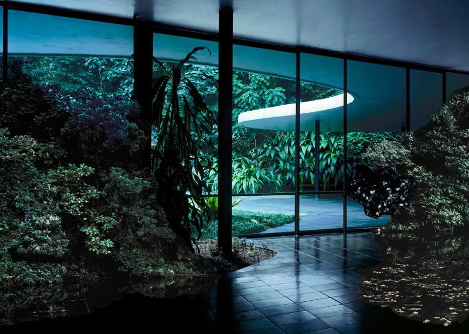 This visual debate concerning the importance of the natural world in comparison to our man-made human worlds leads to Bendana-Pinel’s comment that “Caio considers that photography has always encompassed the dichotomy between a certain truth and a perceived reality.” Meanwhile, further works which provide locations with new functions – a Brasilia golf course becoming an interior décor for example, or a 200 year old botanical garden presented as a virgin wilderness – confirm this statement. These images which combine the forests around São Paulo, the oil platforms of the Amazon, empty swimming pools in Modernist architectures and attempts at Brazilian architectural utopias, provide a complex visual and reveal various realities.