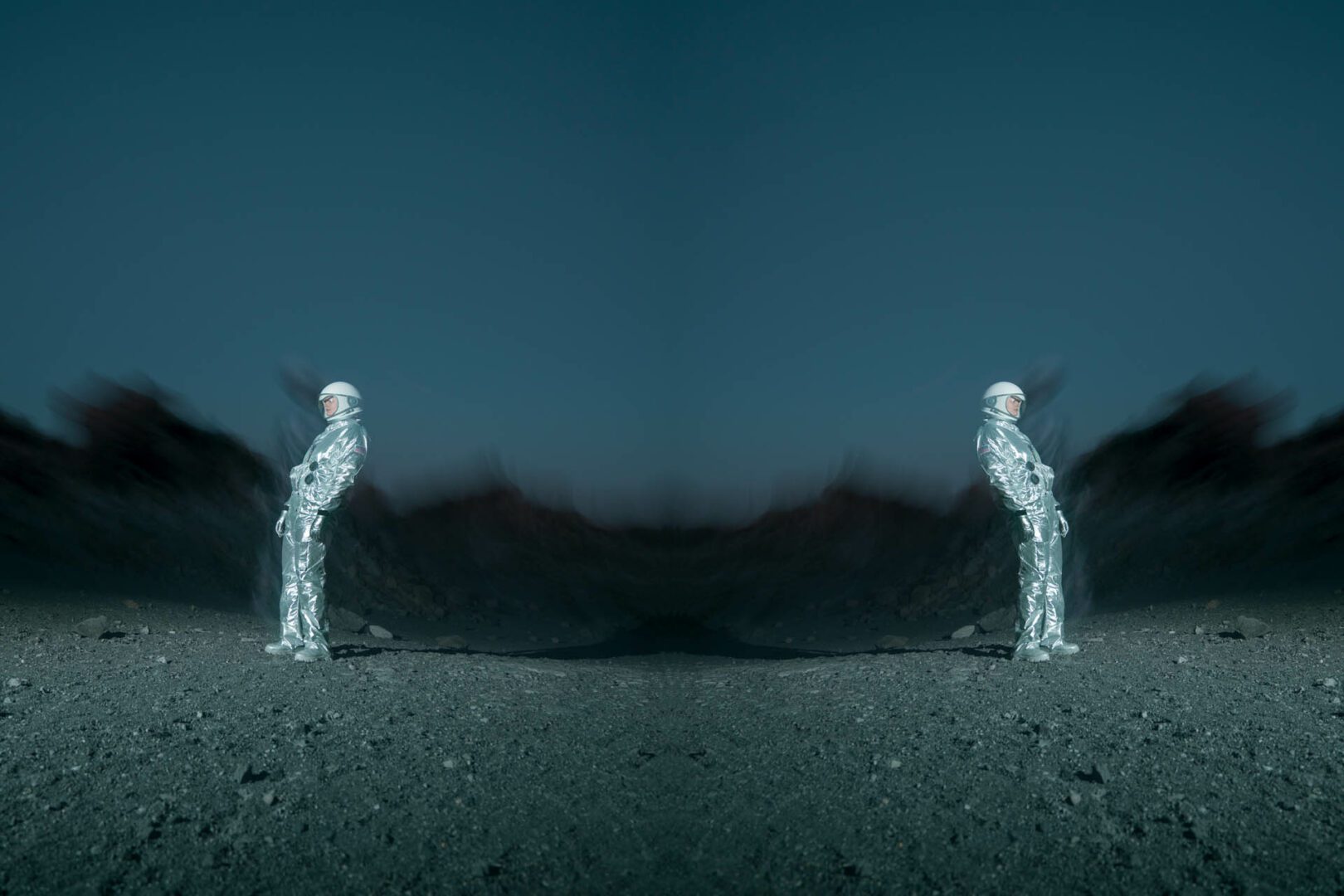 MC: This project is not overtly visual. It was a history that I was fascinated by but had no means to photograph. Once I began working with the NASA archive, I found that manipulating the images was the most effective way to speak to the past. Photographing Out Astronaut brought the narrative into to the present, but I still didn’t feel like it told the entire story. I began experimenting with layering, manipulation and incorporating text. This was the most effective way to visually narrate this history and echo the feel of an archive whilst keeping it contemporary. It also emphasised the fun and child-like wonder of space, which I wanted to maintain.