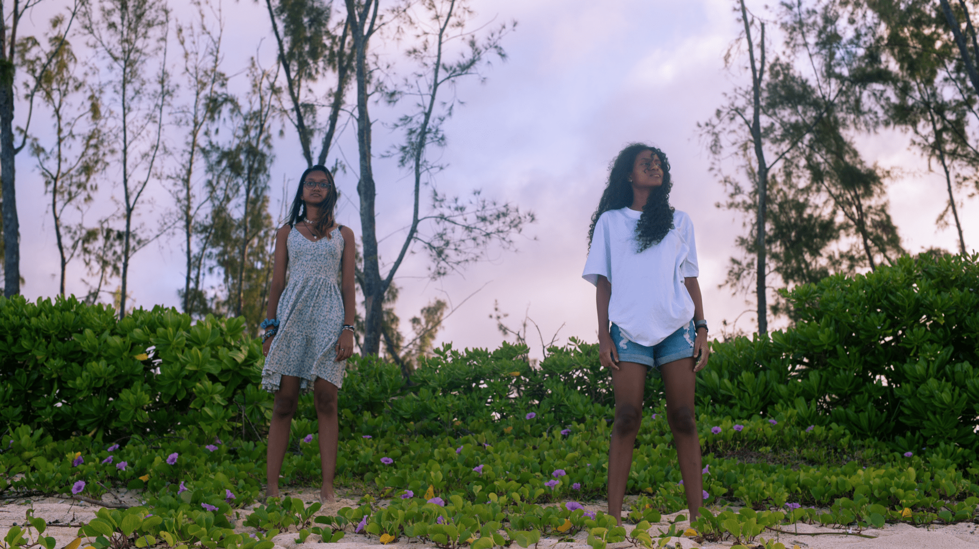 Leanna and Shannah; Chagossian heritage on the de-privatised and free Pomponette beach in Bel Air, Mauritius.