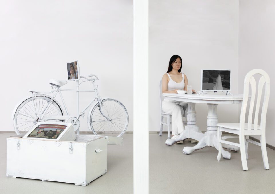 Video installation When We Look into Each Other’s Eyes was longlisted for the Aesthetica Art Prize in 2025. The work reconstructs three specific scenes from Li’s mother’s perspective: a bicycle, the family dining table, and the suitcase she brought with her after marriage. The piece questions how much we really know those closest to us. The artist explains “My mother seeped into the whole of my life, while I never really entered her past life. I seem to be caught in a reality that lies between omniscience and unknowability. She incarnated into two images, the familiar mother in front of me, and the woman sealed by memory.” Here, she joins a long tradition of creatives who examine parental relationships through their work – think of Louise Bourgeois’s Maman, a 30-feet-high sculpture of a spider associated with her own mother, or, more recently, Diana Markosian’s Father, an intimate photographic portrayal of family reconnection.