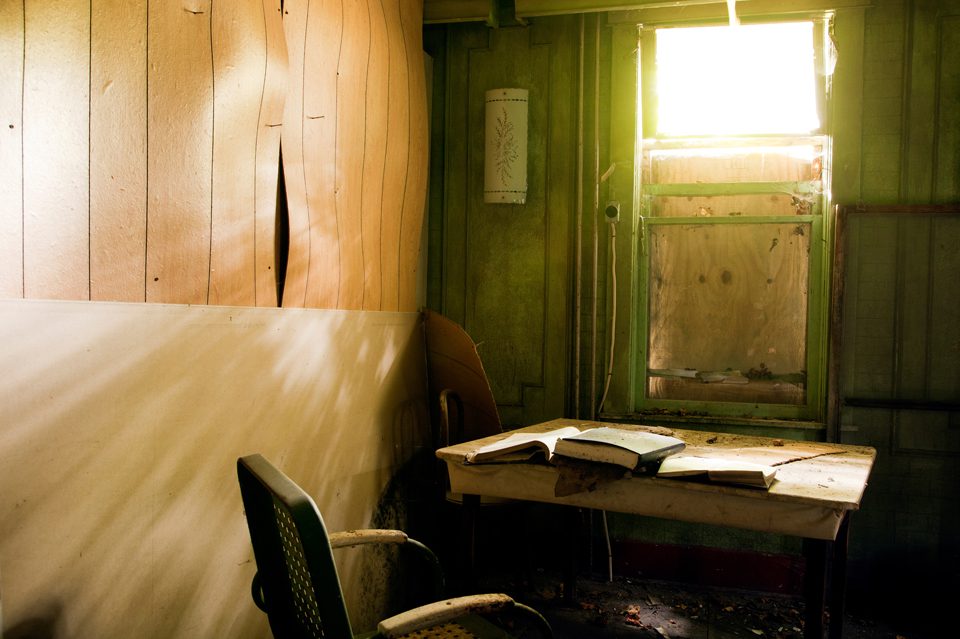 The Chicago-based photographer Samantha VanDeman (b. 1982) finds beauty and life in the decaying and forgotten. Regularly seeking out abandoned spaces with her camera, the artist finds traces of past inhabitants in the remaining furniture, photographs, letters and possessions. VanDeman’s images are silent and unobtrusive, capturing the scenery without disturbance and just as it appears. In her No Vacancy series (2010-2013), the various buildings are shadows of hotels, swimming pools, cafés and houses in different stages of collapse. Undisturbed by human life, the rooms and the objects are eerily peaceful, exuding a stillness that does not come from an active decision but is merely a consequence of the absence of residents. The transformative force of nature is evidenced in the peeling wallpaper, leaking pipes and creeping vines, as the environment reclaims the locations. The following images are taken from the collections No Vacancy and Died Alone (2013).