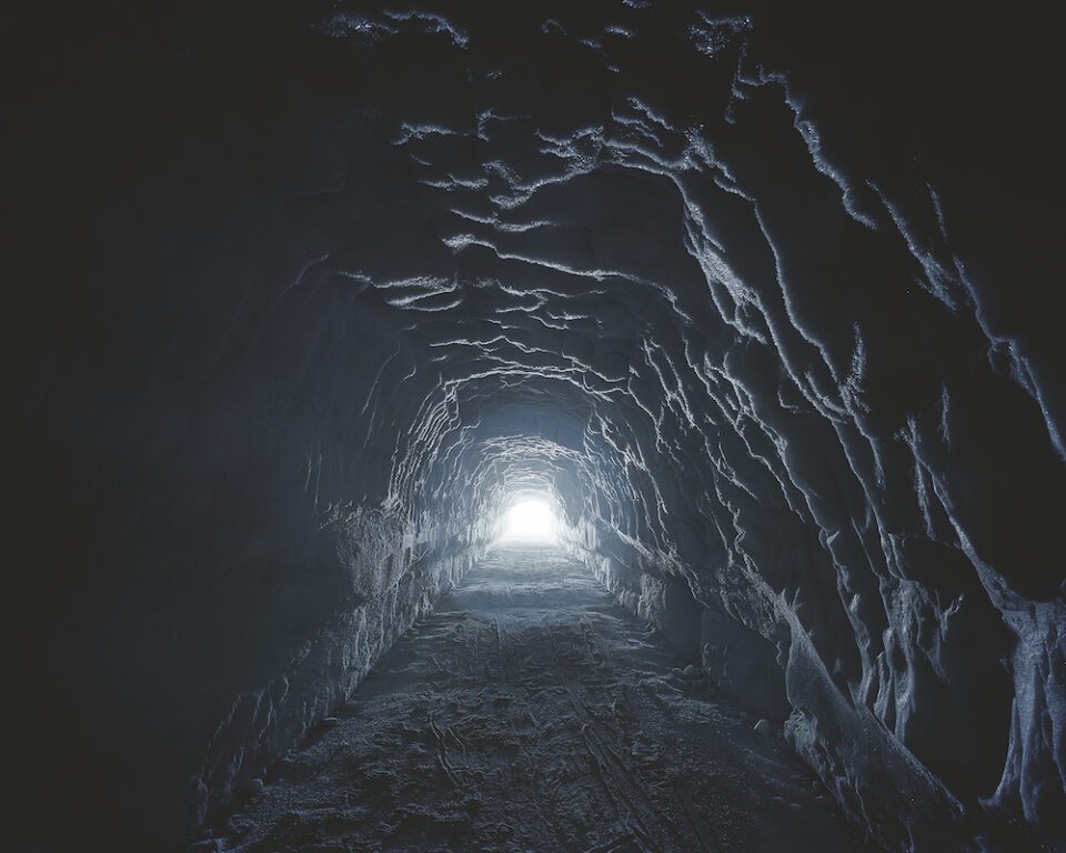 The images in The Polar Silk Road required months of preparation and intensive research, with many captured under extreme weather conditions. Arctic temperatures can reach -50°C, so Sailer takes only “one shot per motif” with an analog view camera. No life lingers in these single images. Stark open landscapes contrast against sculpture-like buildings, conjuring a sense of life on a precipice. This absence is a deliberate act by the artist, who told Dezeen: “I am interested more in the tracks and signs of humans than in images of them. For me, the lack of people in such areas increases the surreal and oppressing atmosphere.” Within this sense of lifelessness, however, nature persists. Towers are blanketed by snow and underground excavations reveal etched mountainscapes.