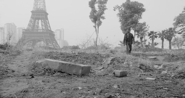 This idea of artifice is picked up again in the films, all of which are set in a city that at first glance appears to be Paris, but is in fact Hangzhou, a suburb of China built as a replica of the French capital. Tied into the dilapidated nature of the building, the pavilion emanates an overriding sensation of disconnection and dislocation; it does not seem to belong among its compatriots. This theme is reiterated and built upon as viewers follow the three protagonists, all of whom seem to be searching for a means of connection through the architecture of the city in which they live. A striking element within the work is that all the men are black, which hints at immigration and again suggests the idea of cultural dislocation.