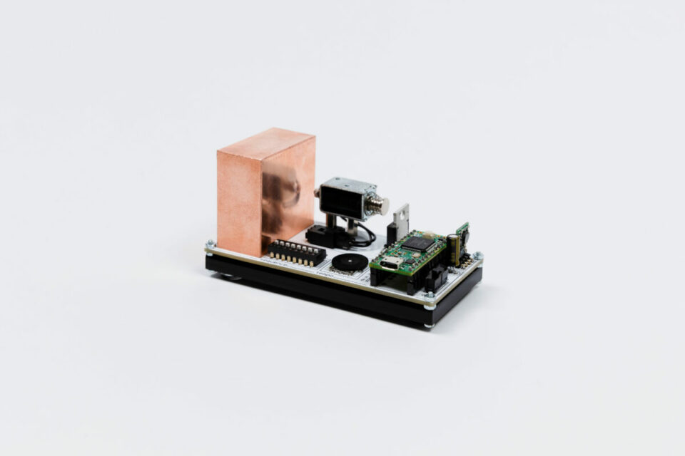 All images: Mo H. Zareei, Material Sequencer (2021). Aluminium, brass, copper, concrete, steel. wood, soleniods, electronics.