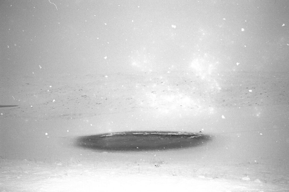 Elsewhere, Pan expands her investigation of scale in The Space Between, moving from the microscopic to the macro, juxtaposing sweeping Arctic vistas with minute dust particles. Here, she introduces digital methods. The images, captured on analogue film, are later infused with digital interference such as light fragments, noise patterns and flickers of “digital dust.” This reminds us that even in vast, seemingly empty spaces – like the Arctic air – there is more than meets the eye. Barren landscapes are transformed into living, dynamic scenes, imbued with renewed wonder.