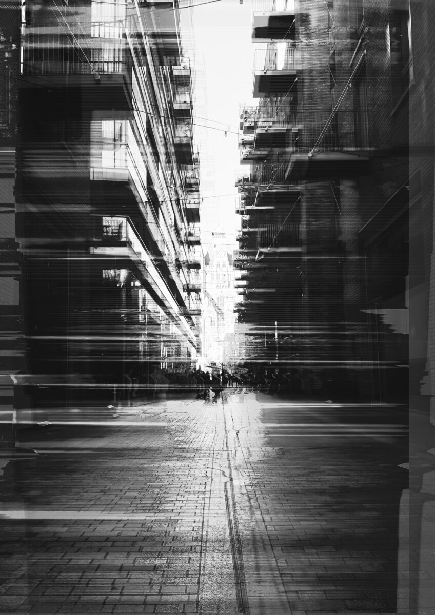 Sun is a London-based visual artist who studied architecture in Glasgow, and has lived experience moving between China and the UK. She brings that background to Afterglow (2024), which uses distortion to represent her “fragmented relationship with home, shaped by years of living abroad.” It’s a black-and-white collection of overexposed, high-contrast cityscapes. The subjects – buildings, people, rivers – are partially obscured by visual slippages and glitches. “Light washes over surfaces, dissolves edges, and leaves only traces behind, just like memory itself. Figures appear close yet unreachable, much like my connection to home, within sight but always out of reach.” It’s a powerful meditation on migration and transition.