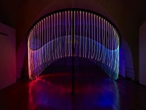 The piece – which will occupy the Central Courtyard – proposes a responsive future for urban design, looking towards adaptable buildings and objects as it changes shape upon touch.