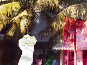 I’m interested in the psychological effects of living everyday life knowing that these profound changes are coming. So rather than the usual images of disaster or catastrophe, I am using my camera to pay attention to everyday signs and symbols of larger changes and anxieties. This is a very troubled paradise and a lot of my imagery reflects this. I try to use familiar motifs of the leisurely tropics, but I present them as images not of promise or luxury, but of fragility and uncertainty.