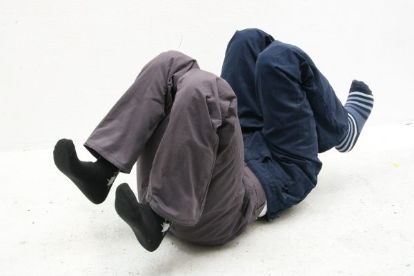 While re-connecting parts of male window mannequins for my sculptures, I suddenly ‘saw’ these mechanisms visualised: two struggling individuals connected by their waists. Two persons completely dependent of each other but also striving to independency. So for A Prisoner´s Dilemma I did not work out of a clear concept, but it was more a matter of serendipity.