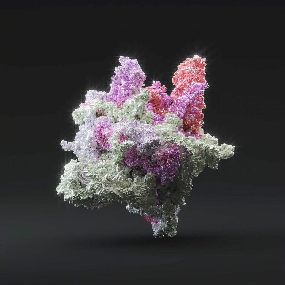 Artists and technologists Harry Yeff (Reeps100) and Trung Bao are interested in these questions. Their answer is VOICE GEMS, “the first project in the world” to produce gemstone artworks generated from influential human and critically endangered animal voices. This September, these dazzling objects are displayed across the interior and exterior of London’s W1 Curates on Oxford Street. Presented by W1 Immersive, these sculptures turn audio recordings into a visual archive of love, death, hope and legacy.
