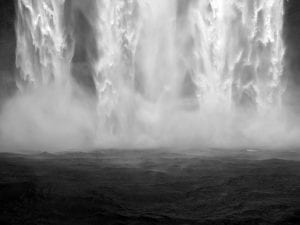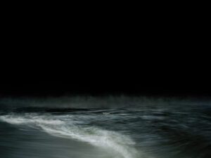 There are pieces in which this concept takes on a more literal role. In Cable Car (2019), the overhanging lines of the photographs have been replaced with red string. A more playful example is a pair of pictures titled Feed the Birds (2019), in which a string of tiny glass beads runs from the hands of people to the mouths of swooping seagulls. Seagulls also appear in a pair of images titled Plumage (2019). Feathers turn into a bloom of overlapping ovals.