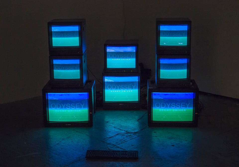 Odyssey is an interactive installation which questions the definitions of virtual space and the illusory aspects of choice and action within this. It presents an endless hallucinatory dream of an unattainable horizon which the viewer is tasked with reaching. Yet with every action, the dissolving horizon slips further away.