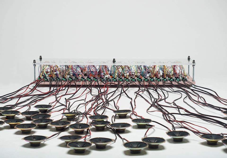 Oh My ( ) is an installation that calls out “god” in 48 languages using a Twitter database. The machine monitors the Twitter timeline in real time and when a tweeted text includes the word god, speakers sound “oh my (god)” (in the appropriate language) at the same time.